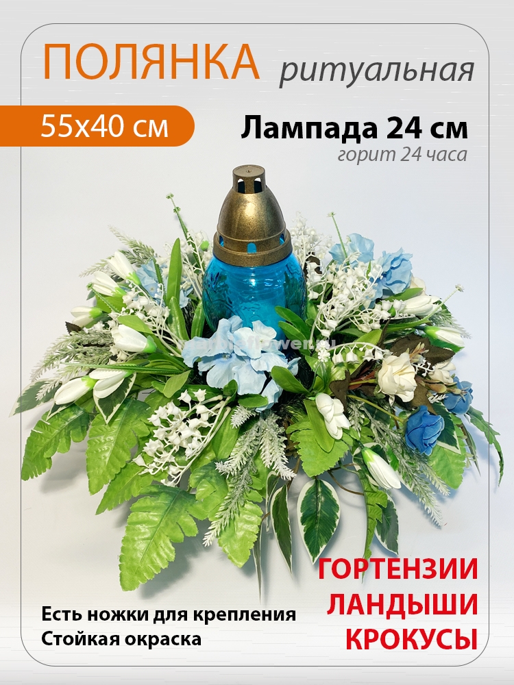 Полянка изысканно украсит место захоронения и может быть установлена в любое время (в отличие от венка, который устанавливают обычно только во время похорон).
