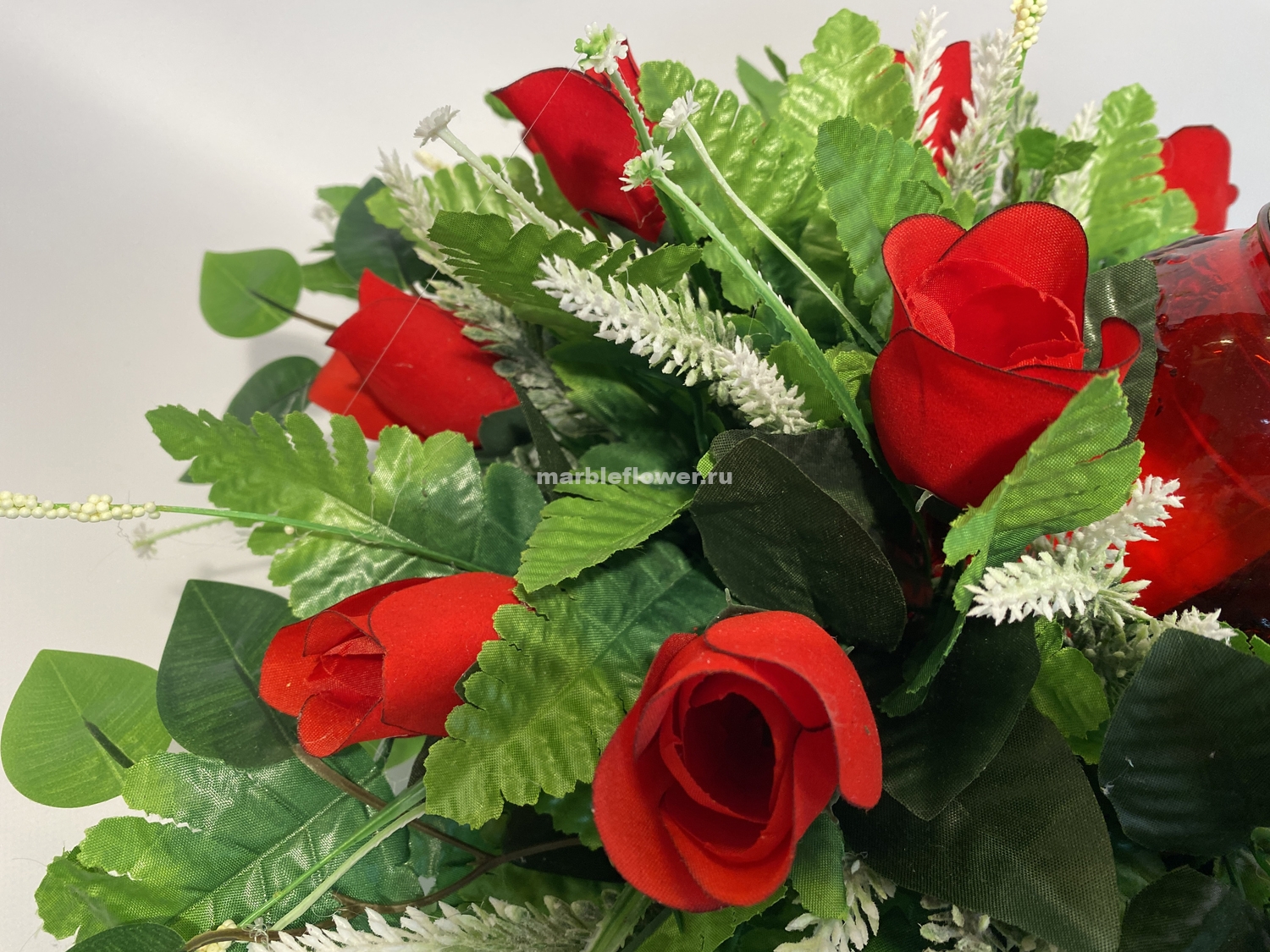 Композиция с искусственными цветами, поляна на могилу, ритуальная поляна, корзина на кладбище
